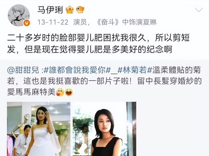 在职业发展过程中,马伊琍选择了短发作为个人形象特征。这种发型从她出道初期就保持下来,持续多年。她在多个角色中以短发出现,例如在2007年的电视剧《奋斗》中饰演夏琳一角,该剧播出后引起讨论。她在剧中的短发形象与角色独立个性相匹配。之后,她在其他作品中也维持类似造型,这成为她在外界的固定印象。